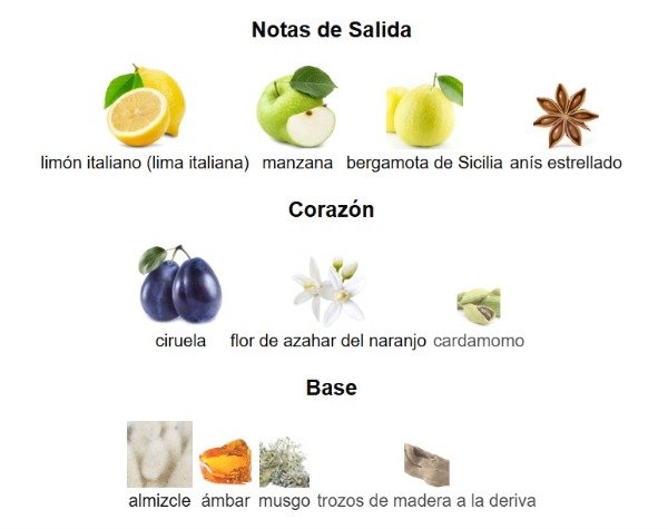 En el corazón, la fragancia se vuelve más elegante y sofisticada, con un contraste único de ciruela, flor de azahar del naranjo y cardamomo, que le da cuerpo y un aire seductor sin perder ligereza. El fondo es envolvente y duradero: almizcle, ámbar, musgo y maderas a la deriva generan una estela cálida y limpia que deja huella.