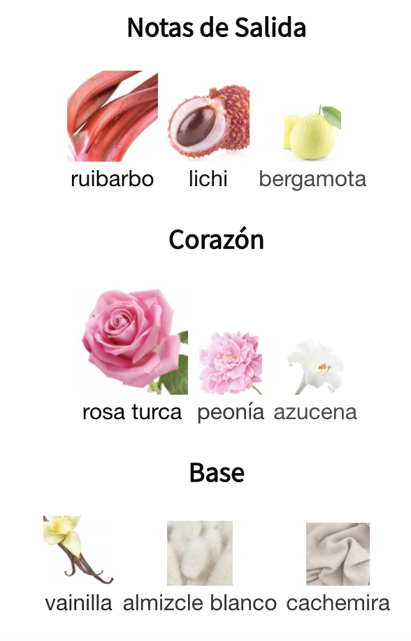 Después florece un corazón delicado y ultra femenino: jazmín, peonía, lirio silvestre y rosa turca crean un bouquet floral romántico, suave y envolvente. El fondo es lo que la vuelve adictiva: ámbar, pachulí, vainilla, almizcle blanco y cachemira que se funden en una estela cremosa, cálida y con mucha clase.
