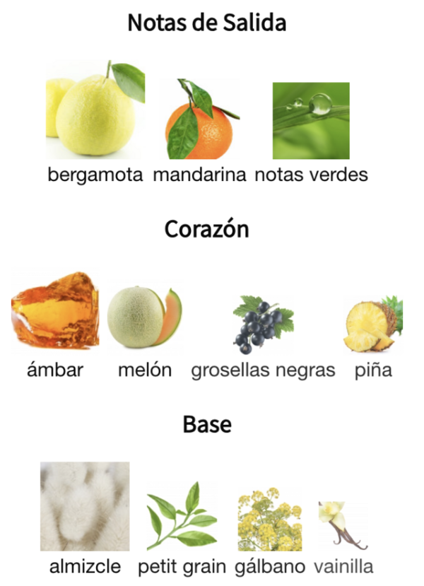 El fondo suaviza todo con una mezcla de almizcle, petit grain, gálbano y vainilla, que le da un cierre cremoso, sutil y con esa estela pulida que acompaña sin invadir. Un aroma que huele a piel cuidada, a frescura con clase.